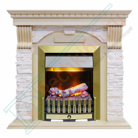 Электрокаминокомплект Dublin - Слоновая кость с патиной / Сланец крем с очагом Danville Antique Brass